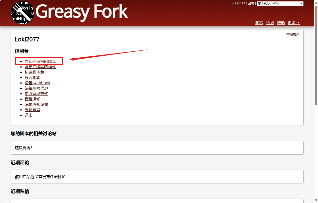 右上角语言选择的左边。(新注册第一天不能发布脚本)