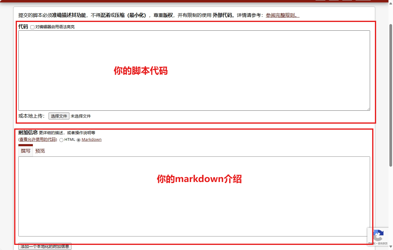 点击发布你编写的脚本,然后上传你的代码,和markdown介绍。